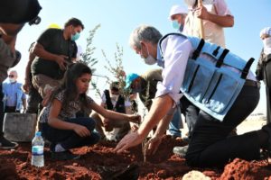 وشارك مسؤولي الوفد أبناء المخيمات غرس أشجار الزيتون خلال الزيارة.