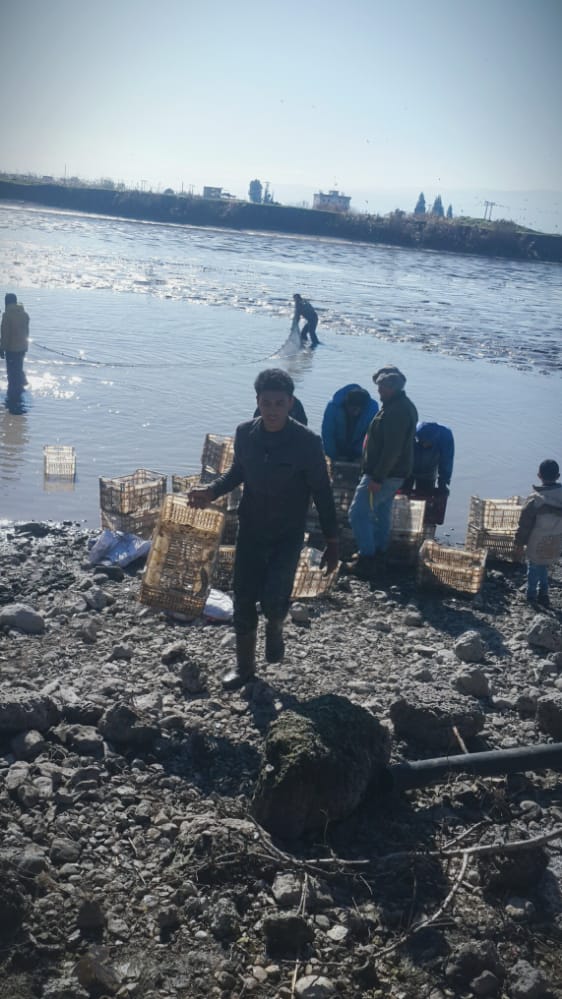 يوضع السّمك بأقفاص ويأتي التجار إلى تسويقها في مختلف محافظات سوريا.